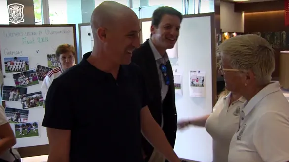 Luis Rubiales ha llegado a la sede del equipo español en Suiza acompañado por el Presidente del Comité Nacional de Fútbol, Rafael del Amo, la directora de Comunicación Marisa González y el director de Relaciones Institucionales de la RFEF, Antonio Gómez