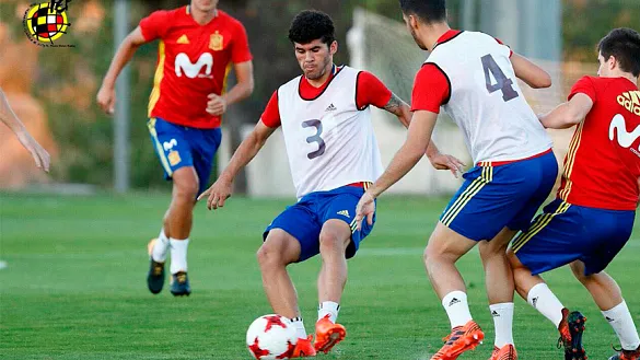 El equipo de trabajo de la selección, en el Grupo de Estudio de UEFA en Bélgica