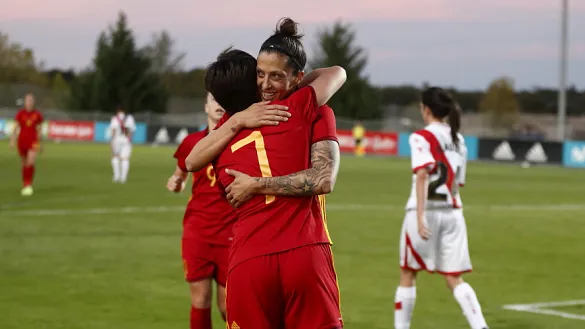 La internacional española, junto a Jennifer Hermoso, ambas goleadoras en el entrenamiento ante el Rayo Vallecano, hablan de la importancia de conseguir la victoria en el estreno de España en el clasificatorio del Mundial