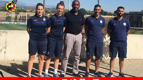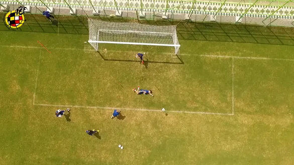 El lateral derecho de la Selección Española Sub-17 emula a Dani Ceballos en su desafio. Pero además, intenta hacerlo con un pequeño obstáculo que dificulta la visión, una portería