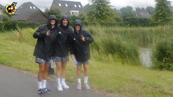 Con el objeto de airear cuerpo y mente, en una mañana en la que alternaron lluvia y ratos de sol, las jugadoras españolas dieron un corto paseo por los alrededores de su hotel en Breda