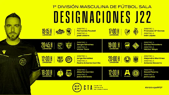 Actualidad Inicio Noticias Todas Categorías Institucional Expand Secondary Navigation Menu Presidencia Juntas directivas Igualdad Responsabilidad Social y Sostenibilidad Integridad Protección de la infancia Área médica Elecciones 2024 Federaciones Territoriales FIFA Patrocinadores rfef.es Museo Labor federativa Expand Secondary Navigation Menu Concursos Circulares Horarios Sanciones Mundial 2030 Competiciones masculinas Expand Secondary Navigation Menu Primera División Segunda División Primera Federación Segunda Federación Tercera Federación Copa del Rey Mapfre Supercopa Copa Federación Playoff de ascenso Competiciones UEFA Competiciones femeninas Expand Secondary Navigation Menu Primera División Femenina Primera Federación Iberdrola Segunda Federación FUTFEM Tercera Federación FUTFEM Copa de la Reina Iberdrola Supercopa Iberdrola Juveniles fútbol 11 Expand Secondary Navigation Menu División de Honor Juvenil Copa de Campeones Copa del Rey juvenil Youth League Selecciones autonómicas Expand Secondary Navigation Menu Copa de las Regiones de UEFA Femenino sub-16 Masculino sub-16 Femenino sub-14 Masculino sub-14 Femenino sub-12 Masculino sub-12 Fútbol sala Expand Secondary Navigation Menu Primera Masculina FS Primera FS Iberdrola Segunda Masculina FS Segunda Femenina FS Segunda B FS División de Honor Juvenil FS Copa de España Supercopa FS Supercopa Femenina FS Copa del Rey FS Copa de la Reina FS Copa de España Juvenil Campeonato de España Juvenil FS Futsal UEFA Champions League Selecciones autonómicas FS Otras competiciones Fútbol playa Expand Secondary Navigation Menu Primera División Playa Masc Segunda División Playa Masc Primera División Playa Fem Segunda División Playa Fem Copa Federación Playa Supercopa Playa Selecciones autonómicas Playa Campeonatos Clubes Base Playa Selecciones Playa adaptado Grassroots Expand Secondary Navigation Menu Playmakers Árbitros Expand Secondary Navigation Menu Designaciones VAR Expand Secondary Navigation Menu Audios VAR Entrenadores Expand Secondary Navigation Menu Premios Técnicos por el mundo Cursos Formación Expand Secondary Navigation Menu Formación online Formación presencial Selección Absoluta Selecciones Masculinas Expand Secondary Navigation Menu Sub-21 Sub-20 Sub-19 Sub-18 Sub-17 Sub-16 Sub-15 Sub-14 Selección Absoluta Femenina Selecciones Femeninas Expand Secondary Navigation Menu Sub-23 Sub-20 Femenina Sub-19 Femenina Sub-17 Femenina Sub-18 Femenina Sub-16 Femenina Sub-15 Femenina Sub-14 Femenina Selección Olímpica Expand Secondary Navigation Menu Selección Olímpica femenina Selección Olímpica masculina Selecciones fútbol sala masculinas Expand Secondary Navigation Menu Selección Absoluta fútbol sala Sub-23 fútbol sala Sub-21 fútbol sala Sub-18 fútbol sala Sub-19 fútbol sala Sub-17 fútbol sala Sub-16 fútbol sala Sub-15 fútbol sala Selecciones fútbol sala femeninas Expand Secondary Navigation Menu Selección Femenina fútbol sala Sub-23 Femenina fútbol sala Sub-21 Femenina fútbol sala Sub-19 Femenina fútbol sala Sub-18 Femenina fútbol sala Sub-17 Femenina fútbol sala Sub-15 Femenina fútbol sala Selecciones de fútbol playa Expand Secondary Navigation Menu Absoluta Masculina Playa Absoluta Femenina Playa Sub-21 Masculina Playa E-Sports Expand Secondary Navigation Menu e-Copa RFEF Leyendas Aplicar 57105 Resultados. Video en el interior Copa de la Reina Iberdrola El Atlético de Madrid toma la delantera (1-0) Gio anotó el tanto que da una mínima ventaja a las colchoneras de cara al partido de vuelta 11 Marzo 2026 Galería de imágenes en el interior Sub-19 fútbol sala Remontada para cerrar la concentración con buen sabor de boca (4-3) La selección Sub-19 cerró su concentración en Las Rozas con un encuentro ante el Movistar Inter B en el que tuvo que ir a remolque desde el inicio y en el que fue de menos a más. Un partido que sirve... 11 Marzo 2026 Galería de imágenes en el interior Institucional La Ciudad del fútbol acoge unas exitosas 'Jornadas Competicionales' Durante este miércoles, 11 de marzo, la Secretaría General de la Real Federación Española de Fútbol, en colaboración con el Departamento de Competiciones y Fútbol Formativo y con la Asesoría Jurídica... 11 Marzo 2026 Primera Masculina FS Designaciones | Estos son los árbitros de la jornada 22 en Primera División de fútbol sala Los encuentros se disputarán entre el viernes 13, sábado 14 y domingo 15 de marzo 11 Marzo 2026 Copa del Rey juvenil Todos los detalles de la Copa del Rey Juvenil Consulta nuestro dosier oficial para enterarte de las fechas de los partidos, conocer la sede de la final four y descubrir el palmarés de este trepidante torneo que se disputa a partir del miércoles 11 de marzo en Lugo 11 Marzo 2026 Segunda Femenina FS Lainco Rubí - Entrerríos Automatización y AECS L' Hospitalet - Somriu FS Ripollet, en rfef.es Ambos encuentros, correspondientes al grupo 2, se disputarán el sábado 14 de marzo 11 Marzo 2026 Copa de la Reina Iberdrola A 180 minutos de la gran final Las semifinales de la Copa de la Reina hacen parada en Alcalá y Badalona en su primera entrega 11 Marzo 2026 Galería de imágenes en el interior Sub-17 Femenina fútbol sala Tres goles en el primer partido de entrenamiento La selección sub-17 femenina disputo este miércoles su primer partido de entrenamiento en el que el seleccionador, Iñigo Martínez, dividió a las 20 jugadoras convocadas en dos equipos, dirigidos por... 11 Marzo 2026 Video en el interior Segunda Masculina FS Entrerríos Automatización - Wanapix, derbi de altura El partido podrá seguirse en el canal de YouTube de Futsal RFEF (sábado 14 de marzo, 19:15h) 11 Marzo 2026 Copa de España Nuevas entradas a la venta para la Copa de España Renfe 2026 Del 19 al 22 de marzo, el Palacio de los Deportes de Granada alberga el torneo más intenso del calendario nacional 11 Marzo 2026 Selección Absoluta La Selección da la bienvenida a Tosta Rica como nuevo colab