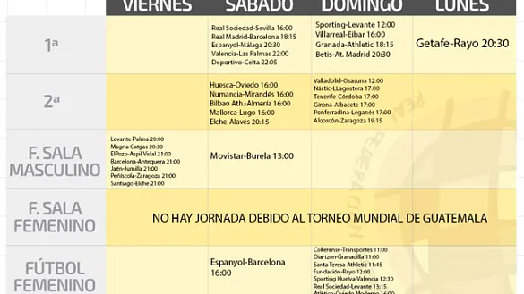 Actualidad Inicio Noticias Todas Categorías Institucional Expand Secondary Navigation Menu Presidencia Juntas directivas Igualdad Responsabilidad Social y Sostenibilidad Integridad Protección de la infancia Área médica Elecciones 2024 Federaciones Territoriales FIFA Patrocinadores rfef.es Museo Labor federativa Expand Secondary Navigation Menu Concursos Circulares Horarios Sanciones Mundial 2030 Competiciones masculinas Expand Secondary Navigation Menu Primera División Segunda División Primera Federación Segunda Federación Tercera Federación Copa del Rey Mapfre Supercopa Copa Federación Playoff de ascenso Competiciones UEFA Competiciones femeninas Expand Secondary Navigation Menu Primera División Femenina Primera Federación Iberdrola Segunda Federación FUTFEM Tercera Federación FUTFEM Copa de la Reina Iberdrola Supercopa Iberdrola Juveniles fútbol 11 Expand Secondary Navigation Menu División de Honor Juvenil Copa de Campeones Copa del Rey juvenil Youth League Selecciones autonómicas Expand Secondary Navigation Menu Copa de las Regiones de UEFA Femenino sub-16 Masculino sub-16 Femenino sub-14 Masculino sub-14 Femenino sub-12 Masculino sub-12 Fútbol sala Expand Secondary Navigation Menu Primera Masculina FS Primera FS Iberdrola Segunda Masculina FS Segunda Femenina FS Segunda B FS División de Honor Juvenil FS Copa de España Supercopa FS Supercopa Femenina FS Copa del Rey FS Copa de la Reina FS Copa de España Juvenil Campeonato de España Juvenil FS Futsal UEFA Champions League Selecciones autonómicas FS Otras competiciones Fútbol playa Expand Secondary Navigation Menu Primera División Playa Masc Segunda División Playa Masc Primera División Playa Fem Segunda División Playa Fem Copa Federación Playa Supercopa Playa Selecciones autonómicas Playa Campeonatos Clubes Base Playa Selecciones Playa adaptado Grassroots Expand Secondary Navigation Menu Playmakers Árbitros Expand Secondary Navigation Menu Designaciones VAR Expand Secondary Navigation Menu Audios VAR Entrenadores Expand Secondary Navigation Menu Premios Técnicos por el mundo Cursos Formación Expand Secondary Navigation Menu Formación online Formación presencial Selección Absoluta Selecciones Masculinas Expand Secondary Navigation Menu Sub-21 Sub-20 Sub-19 Sub-18 Sub-17 Sub-16 Sub-15 Sub-14 Selección Absoluta Femenina Selecciones Femeninas Expand Secondary Navigation Menu Sub-23 Sub-20 Femenina Sub-19 Femenina Sub-17 Femenina Sub-18 Femenina Sub-16 Femenina Sub-15 Femenina Sub-14 Femenina Selección Olímpica Expand Secondary Navigation Menu Selección Olímpica femenina Selección Olímpica masculina Selecciones fútbol sala masculinas Expand Secondary Navigation Menu Selección Absoluta fútbol sala Sub-23 fútbol sala Sub-21 fútbol sala Sub-18 fútbol sala Sub-19 fútbol sala Sub-17 fútbol sala Sub-16 fútbol sala Sub-15 fútbol sala Selecciones fútbol sala femeninas Expand Secondary Navigation Menu Selección Femenina fútbol sala Sub-23 Femenina fútbol sala Sub-21 Femenina fútbol sala Sub-19 Femenina fútbol sala Sub-18 Femenina fútbol sala Sub-17 Femenina fútbol sala Sub-15 Femenina fútbol sala Selecciones de fútbol playa Expand Secondary Navigation Menu Absoluta Masculina Playa Absoluta Femenina Playa Sub-21 Masculina Playa E-Sports Expand Secondary Navigation Menu e-Copa RFEF Leyendas Aplicar 57278 Resultados. Sub-19 Femenina Estas son las fechas de la Copa Mundial Femenina Sub-20 de Papúa Nueva Guinea La FIFA ha comunicado tras su última reunión el calendario de fechas de inicio y final del torneo que disputarán nuestras subcampeonas de Europa el próximo año. Además, también se ha dado a conocer la fecha de la Copa Mundial Sub-17 Femenina de Jordania 19 Noviembre 2015 Circulares Consulta la circular RFEF sobre medidas de seguridad en las competiciones oficiales La Real Federación Española de Fútbol recuerda a los clubes que participan en competiciones de ámbito estatal la necesidad de observar las medidas de seguridad y prevención de violencia que marcan los textos legales en vigor 19 Noviembre 2015 Selección Absoluta GALERÍA | Estas son las fotos que no has visto del viaje de la Selección Sub-21 a Croacia Una concentración de cualquier Selección española siempre deja curiosas imágenes. Detalles que quizás pasan inadvertidos en el momento pero que después son bonitos de recordar. Aquí te dejamos algunas fotos que no viste del viaje en tierras croatas 19 Noviembre 2015 Selección Absoluta VÍDEO TEST: ¿Sabes qué jugadores de la Selección Española anotaron estos goles? ¿Serás capaz de adivinar con un vídeo difuminado quién es el internacional que marca el gol? Iniesta, Sergio Ramos, Piqué, Torres, Xavi Hernández... 19 Noviembre 2015 Selección Absoluta Qué es de... Javi Moreno Delantero anotador, eficaz y contundente, formó parte del mejor Deportivo Alavés y llegó a la Selección española de fútbol en 2001. Hoy, vive el deporte desde la posición de entrenador 19 Noviembre 2015 Árbitros OFICIAL | Cambios de designación en la jornada 12ª de Primera División Los partidos se disputarán entre el sábado 21 y el lunes 23 de noviembre 19 Noviembre 2015 Selección Absoluta ¿Cuántos goles ha marcado la Selección? ¿En cuántos países ha jugado? ¡Descúbrelo en la Central de Datos! ¿Eres un apasionado del fútbol y también de las estadísticas? En nuestro especial encontrarás los números más destacados de la Selección española de fútbol, curiosidades y datos sorprendentes. ¡Visita la Central de Datos y sorpréndete! 19 Noviembre 2015 Competiciones masculinas ¿Quieres saber a qué hora juega tu equipo este fin de semana? Aquí lo tienes a tu disposición Este sábado arranca una nueva jornada de Primera División marcada por el gran clásico que mide al Real Madrid y al FC Barcelona en el Santiago Bernabéu. Pero además hay otros muchos interesantísimos encuentros desde este mismo viernes 19 Noviembre 2015 Selección Absoluta Vota: ¿Q