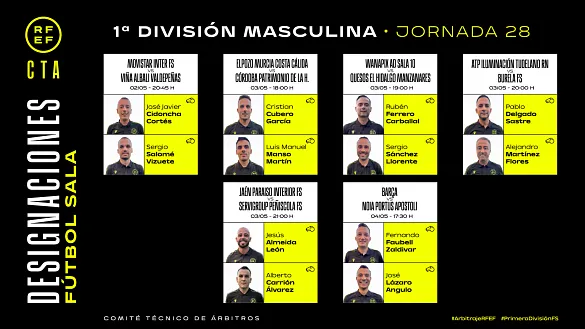 Actualidad Inicio Noticias Todas Categorías Institucional Expand Secondary Navigation Menu Presidencia Juntas directivas Igualdad Responsabilidad Social y Sostenibilidad Integridad Protección de la infancia Área médica Elecciones 2024 Federaciones Territoriales FIFA Patrocinadores rfef.es Museo Labor federativa Expand Secondary Navigation Menu Concursos Circulares Horarios Sanciones Mundial 2030 Competiciones masculinas Expand Secondary Navigation Menu Primera División Segunda División Primera Federación Segunda Federación Tercera Federación Copa del Rey Mapfre Supercopa Copa Federación Playoff de ascenso Competiciones UEFA Competiciones femeninas Expand Secondary Navigation Menu Primera División Femenina Primera Federación Iberdrola Segunda Federación FUTFEM Tercera Federación FUTFEM Copa de la Reina Iberdrola Supercopa Iberdrola Juveniles fútbol 11 Expand Secondary Navigation Menu División de Honor Juvenil Copa de Campeones Copa del Rey juvenil Youth League Selecciones autonómicas Expand Secondary Navigation Menu Copa de las Regiones de UEFA Femenino sub-16 Masculino sub-16 Femenino sub-14 Masculino sub-14 Femenino sub-12 Masculino sub-12 Fútbol sala Expand Secondary Navigation Menu Primera Masculina FS Primera FS Iberdrola Segunda Masculina FS Segunda Femenina FS Segunda B FS División de Honor Juvenil FS Copa de España Supercopa FS Supercopa Femenina FS Copa del Rey FS Copa de la Reina FS Copa de España Juvenil Campeonato de España Juvenil FS Futsal UEFA Champions League Selecciones autonómicas FS Otras competiciones Fútbol playa Expand Secondary Navigation Menu Primera División Playa Masc Segunda División Playa Masc Primera División Playa Fem Segunda División Playa Fem Copa Federación Playa Supercopa Playa Selecciones autonómicas Playa Campeonatos Clubes Base Playa Selecciones Playa adaptado Grassroots Expand Secondary Navigation Menu Playmakers Árbitros Expand Secondary Navigation Menu Designaciones VAR Expand Secondary Navigation Menu Audios VAR Entrenadores Expand Secondary Navigation Menu Premios Técnicos por el mundo Cursos Formación Expand Secondary Navigation Menu Formación online Formación presencial Selección Absoluta Selecciones Masculinas Expand Secondary Navigation Menu Sub-21 Sub-20 Sub-19 Sub-18 Sub-17 Sub-16 Sub-15 Sub-14 Selección Absoluta Femenina Selecciones Femeninas Expand Secondary Navigation Menu Sub-23 Sub-20 Femenina Sub-19 Femenina Sub-17 Femenina Sub-18 Femenina Sub-16 Femenina Sub-15 Femenina Sub-14 Femenina Selección Olímpica Expand Secondary Navigation Menu Selección Olímpica femenina Selección Olímpica masculina Selecciones fútbol sala masculinas Expand Secondary Navigation Menu Selección Absoluta fútbol sala Sub-23 fútbol sala Sub-21 fútbol sala Sub-18 fútbol sala Sub-19 fútbol sala Sub-17 fútbol sala Sub-16 fútbol sala Sub-15 fútbol sala Selecciones fútbol sala femeninas Expand Secondary Navigation Menu Selección Femenina fútbol sala Sub-23 Femenina fútbol sala Sub-21 Femenina fútbol sala Sub-19 Femenina fútbol sala Sub-18 Femenina fútbol sala Sub-17 Femenina fútbol sala Sub-15 Femenina fútbol sala Selecciones de fútbol playa Expand Secondary Navigation Menu Absoluta Masculina Playa Absoluta Femenina Playa Sub-21 Masculina Playa E-Sports Expand Secondary Navigation Menu e-Copa RFEF Leyendas Aplicar 57287 Resultados. Segunda Federación, Designaciones DESIGNACIONES | Estos son los árbitros de la jornada 34 en Segunda Federación Los enfrentamientos se disputarán entre el sábado 3 y el domingo 4 de mayo 01 Mayo 2025 Primera Federación, Designaciones DESIGNACIONES | Estos son los árbitros de la jornada 35 en Primera Federación Los veinte encuentros se jugarán entre el viernes 2, el sábado 3 y el domingo 4 de mayo 01 Mayo 2025 Designaciones, Primera Federación Iberdrola Designaciones | Estas son las árbitras de la ida del playoff de ascenso a Primera División Femenina Cuatro conjuntos luchan por salir de Primera Federación Iberdrola 01 Mayo 2025 Designaciones, VAR, Primera División Designaciones | Estos son los árbitros designados para la jornada 34 en Primera División DESIGNACIÓN ARBITRAL COMPLETA I JORNADA 34 I PRIMERA DIVISIÓN MASCULINA I TEMPORADA 2024/2025 01 Mayo 2025 Designaciones, Primera División Femenina Designaciones | Estas son las árbitras designadas para la jornada 28 en Primera División Femenina DESIGNACIÓN ARBITRAL COMPLETA I PRIMERA DIVISIÓN FEMENINA I JORNADA 28 I TEMPORADA 2024/2025 01 Mayo 2025 Galería de imágenes en el interior Absoluta Masculina Playa Disfruta gratis de los partidos de España en FIFA+ La plataforma de stramings oficial de FIFA emitirá TODOS los partidos del Mundial de Seychelles de forma gratuita para los aficionados de nuestro país 01 Mayo 2025 Copa de la Reina FS Poio Pescamar quiere romper el techo de cristal El conjunto conservero buscará levantar su primer título nacional en Cartagena 01 Mayo 2025 Copa de la Reina FS El STV Roldán sueña en grande El apoyo mayoritario de su afición podría marcar la diferencia 01 Mayo 2025 Galería de imágenes en el interior Absoluta Masculina Playa La mejor sesión de fotos del Mundial No lo decimos nosotros, lo dijeron los fotógrafos, cámaras y compañeros de redes sociales de FIFA: "No hay una selección con mayor energía" 01 Mayo 2025 Video en el interior Galería de imágenes en el interior Copa de la Reina FS Una pista única para la Copa de la Reina de fútbol sala Creada de manera exclusiva para la competición femenina, la pista lucirá en el Palacio de los Deportes de Cartagena 30 Abril 2025 Primera Masculina FS, Designaciones DESIGNACIONES | Estos son los árbitros de la jornada 28 en Primera División de fútbol sala Los encuentros se disputarán entre el viernes 2, el sábado 3 y el domingo 4 de mayo 30 Abril 2025 Ver más Ver más
