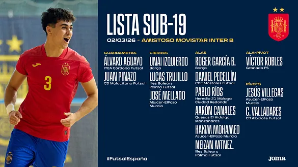 Actualidad Inicio Noticias Todas Categorías Institucional Expand Secondary Navigation Menu Presidencia Juntas directivas Igualdad Responsabilidad Social y Sostenibilidad Integridad Protección de la infancia Área médica Elecciones 2024 Federaciones Territoriales FIFA Patrocinadores rfef.es Museo Labor federativa Expand Secondary Navigation Menu Concursos Circulares Horarios Sanciones Mundial 2030 Competiciones masculinas Expand Secondary Navigation Menu Primera División Segunda División Primera Federación Segunda Federación Tercera Federación Copa del Rey Mapfre Supercopa Copa Federación Playoff de ascenso Competiciones UEFA Competiciones femeninas Expand Secondary Navigation Menu Primera División Femenina Primera Federación Iberdrola Segunda Federación FUTFEM Tercera Federación FUTFEM Copa de la Reina Iberdrola Supercopa Iberdrola Juveniles fútbol 11 Expand Secondary Navigation Menu División de Honor Juvenil Copa de Campeones Copa del Rey juvenil Youth League Selecciones autonómicas Expand Secondary Navigation Menu Copa de las Regiones de UEFA Femenino sub-16 Masculino sub-16 Femenino sub-14 Masculino sub-14 Femenino sub-12 Masculino sub-12 Fútbol sala Expand Secondary Navigation Menu Primera Masculina FS Primera FS Iberdrola Segunda Masculina FS Segunda Femenina FS Segunda B FS División de Honor Juvenil FS Copa de España Supercopa FS Supercopa Femenina FS Copa del Rey FS Copa de la Reina FS Copa de España Juvenil Campeonato de España Juvenil FS Futsal UEFA Champions League Selecciones autonómicas FS Otras competiciones Fútbol playa Expand Secondary Navigation Menu Primera División Playa Masc Segunda División Playa Masc Primera División Playa Fem Segunda División Playa Fem Copa Federación Playa Supercopa Playa Selecciones autonómicas Playa Campeonatos Clubes Base Playa Selecciones Playa adaptado Grassroots Expand Secondary Navigation Menu Playmakers Árbitros Expand Secondary Navigation Menu Designaciones VAR Expand Secondary Navigation Menu Audios VAR Entrenadores Expand Secondary Navigation Menu Premios Técnicos por el mundo Cursos Formación Expand Secondary Navigation Menu Formación online Formación presencial Selección Absoluta Selecciones Masculinas Expand Secondary Navigation Menu Sub-21 Sub-20 Sub-19 Sub-18 Sub-17 Sub-16 Sub-15 Sub-14 Selección Absoluta Femenina Selecciones Femeninas Expand Secondary Navigation Menu Sub-23 Sub-20 Femenina Sub-19 Femenina Sub-17 Femenina Sub-18 Femenina Sub-16 Femenina Sub-15 Femenina Sub-14 Femenina Selección Olímpica Expand Secondary Navigation Menu Selección Olímpica femenina Selección Olímpica masculina Selecciones fútbol sala masculinas Expand Secondary Navigation Menu Selección Absoluta fútbol sala Sub-23 fútbol sala Sub-21 fútbol sala Sub-18 fútbol sala Sub-19 fútbol sala Sub-17 fútbol sala Sub-16 fútbol sala Sub-15 fútbol sala Selecciones fútbol sala femeninas Expand Secondary Navigation Menu Selección Femenina fútbol sala Sub-23 Femenina fútbol sala Sub-21 Femenina fútbol sala Sub-19 Femenina fútbol sala Sub-18 Femenina fútbol sala Sub-17 Femenina fútbol sala Sub-15 Femenina fútbol sala Selecciones de fútbol playa Expand Secondary Navigation Menu Absoluta Masculina Playa Absoluta Femenina Playa Sub-21 Masculina Playa E-Sports Expand Secondary Navigation Menu e-Copa RFEF Leyendas Aplicar 57076 Resultados. Designaciones, Segunda Federación DESIGNACIONES | Definidos los árbitros que dirigirán el partido aplazado de la jornada 22 (Gimnástica Segoviana CF - Club Marino de Luanco) El encuentro entre la Gimnástica Segoviana CF y el Club Marino de Luanco se disputará el miércoles 4 de marzo a las 18:00 horas 02 Marzo 2026 Primera Federación, Designaciones DESIGNACIONES | Definidos los árbitros que dirigirán el partido aplazado de la jornada 24 (Villarreal CF "B" - CD Eldense) de la temporada 2025/26 El encuentro entre el Villarreal CF "B" y el CD Eldense se disputará el miércoles 4 de marzo a las 18:30 horas 02 Marzo 2026 Copa de España ¡Consigue tus entradas para la Copa de España Renfe 2026! Del 19 al 22 de marzo, el Palacio de los Deportes de Granada alberga el prestigioso torneo 02 Marzo 2026 Segunda Federación FUTFEM, Horarios Este es el orden de juego de la jornada 21 de Segunda Federación Femenina Los partidos se jugarán entre el 13, 14 y el domingo 15 de marzo 02 Marzo 2026 Primera Masculina FS Los mejores goles y las mejores paradas de la jornada 20 De los 55 goles que se han anotado en la 20ª jornada de liga en Primera División, tres de ellos han destacado por encima del resto. Por ello, el top-3 de mejores goles de esta jornada los... 02 Marzo 2026 Galería de imágenes en el interior Selección Absoluta Femenina España completa en Las Rozas el entrenamiento oficial antes de medirse a Islandia La sesión previa al primer partido de la fase de clasificación se ha llevado a cabo en el campo D de la Ciudad del Fútbol 02 Marzo 2026 Sub-19 fútbol sala Albert Canillas da la lista de la sub-19 para los entrenamientos de marzo El seleccionador sub-19, Albert Canillas, ha hecho oficial la convocatoria para las jornadas de entrenamiento que se realizarán en Las Rozas del 8 al 12 de marzo y que incluirán un partido amistoso... 02 Marzo 2026 rfef.es, Copa del Rey Mapfre, Segunda Masculina FS, Segunda Femenina FS Las retransmisiones de la semana en RFEF.es Del 2 al 8 de marzo no te puedes perder todas las retransmisiones en directo de las categorías inferiores de las selecciones femeninas o las acciones destacadas de la Absoluta y la Copa del Rey 02 Marzo 2026 Segunda Femenina FS Los equipos implicados en la lucha por los playoffs no dan opciones La salvación se complica para los equipos que se encuentran en los puestos de descenso 02 Marzo 2026 Fútbol playa El fútbol playa refuerza su estructura arbitral El Fútbol Playa RFEF reunió a su Comité Técnico Arbitral y a los responsables técnicos nacionales en unas jornada de formación, evaluación y planific