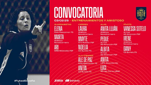 Actualidad Inicio Noticias Todas Categorías Institucional Expand Secondary Navigation Menu Presidencia Juntas directivas Igualdad Responsabilidad Social y Sostenibilidad Integridad Protección de la infancia Área médica Elecciones 2024 Federaciones Territoriales FIFA Patrocinadores rfef.es Museo Labor federativa Expand Secondary Navigation Menu Concursos Circulares Horarios Sanciones Mundial 2030 Competiciones masculinas Expand Secondary Navigation Menu Primera División Segunda División Primera Federación Segunda Federación Tercera Federación Copa del Rey Mapfre Supercopa Copa Federación Playoff de ascenso Competiciones UEFA Competiciones femeninas Expand Secondary Navigation Menu Primera División Femenina Primera Federación Iberdrola Segunda Federación FUTFEM Tercera Federación FUTFEM Copa de la Reina Iberdrola Supercopa Iberdrola Juveniles fútbol 11 Expand Secondary Navigation Menu División de Honor Juvenil Copa de Campeones Copa del Rey juvenil Youth League Selecciones autonómicas Expand Secondary Navigation Menu Copa de las Regiones de UEFA Femenino sub-16 Masculino sub-16 Femenino sub-14 Masculino sub-14 Femenino sub-12 Masculino sub-12 Fútbol sala Expand Secondary Navigation Menu Primera Masculina FS Primera FS Iberdrola Segunda Masculina FS Segunda Femenina FS Segunda B FS División de Honor Juvenil FS Copa de España Supercopa FS Supercopa Femenina FS Copa del Rey FS Copa de la Reina FS Copa de España Juvenil Campeonato de España Juvenil FS Futsal UEFA Champions League Selecciones autonómicas FS Otras competiciones Fútbol playa Expand Secondary Navigation Menu Primera División Playa Masc Segunda División Playa Masc Primera División Playa Fem Segunda División Playa Fem Copa Federación Playa Supercopa Playa Selecciones autonómicas Playa Campeonatos Clubes Base Playa Selecciones Playa adaptado Grassroots Expand Secondary Navigation Menu Playmakers Árbitros Expand Secondary Navigation Menu Designaciones VAR Expand Secondary Navigation Menu Audios VAR Entrenadores Expand Secondary Navigation Menu Premios Técnicos por el mundo Cursos Formación Expand Secondary Navigation Menu Formación online Formación presencial Selección Absoluta Selecciones Masculinas Expand Secondary Navigation Menu Sub-21 Sub-20 Sub-19 Sub-18 Sub-17 Sub-16 Sub-15 Sub-14 Selección Absoluta Femenina Selecciones Femeninas Expand Secondary Navigation Menu Sub-23 Sub-20 Femenina Sub-19 Femenina Sub-17 Femenina Sub-18 Femenina Sub-16 Femenina Sub-15 Femenina Sub-14 Femenina Selección Olímpica Expand Secondary Navigation Menu Selección Olímpica femenina Selección Olímpica masculina Selecciones fútbol sala masculinas Expand Secondary Navigation Menu Selección Absoluta fútbol sala Sub-23 fútbol sala Sub-21 fútbol sala Sub-18 fútbol sala Sub-19 fútbol sala Sub-17 fútbol sala Sub-16 fútbol sala Sub-15 fútbol sala Selecciones fútbol sala femeninas Expand Secondary Navigation Menu Selección Femenina fútbol sala Sub-23 Femenina fútbol sala Sub-21 Femenina fútbol sala Sub-19 Femenina fútbol sala Sub-18 Femenina fútbol sala Sub-17 Femenina fútbol sala Sub-15 Femenina fútbol sala Selecciones de fútbol playa Expand Secondary Navigation Menu Absoluta Masculina Playa Absoluta Femenina Playa Sub-21 Masculina Playa E-Sports Expand Secondary Navigation Menu e-Copa RFEF Leyendas Aplicar 57287 Resultados. Selección Femenina fútbol sala Clàudia Pons da la convocatoria para los entrenamientos de febrero La seleccionadora absoluta de fútbol sala, Clàudia Pons, ha hecho oficial la convocatoria para las sesiones de entrenamiento en Las Rozas que se celebrarán del 9 al 13 de febrero. Unas jornadas de... 03 Febrero 2025 Designaciones, VAR, Copa del Rey Mapfre Designaciones | Estos son los árbitros designados para los cuartos de final de la Copa del Rey DESIGNACIÓN ARBITRAL COMPLETA DE LOS CUARTOS DE FINAL DE LA COPA DEL REY 03 Febrero 2025 Video en el interior Galería de imágenes en el interior Supercopa Femenina FS Disfruta de la celebración de Futsi Atlético Navalcarnero desde dentro El conjunto madrileño levantó en Móstoles su octavo entorchado de la Supercopa femenina 03 Febrero 2025 Selección Absoluta ¡Todo vendido para animar a España en Róterdam! Este lunes, 3 de febrero, se agotaron los billetes para el partido de ida de cuartos de final de la UEFA Nations League 03 Febrero 2025 Video en el interior Audios VAR, Segunda División Audios de las revisiones VAR de la 25ª jornada en Segunda División de la Temporada 24/25 Estos audios se publicarán durante cada jornada de Primera y Segunda División de la Temporada 2024/2025 02 Febrero 2025 Video en el interior Audios VAR, Primera División Estos son los audios de las revisiones VAR de la 22ª jornada en Primera División de la temporada 24/25 Estos audios se publicarán durante cada jornada de Primera y Segunda División de la temporada 2024/2025 02 Febrero 2025 Galería de imágenes en el interior Selección Absoluta fútbol sala GALERÍA | Primera sesión de entrenamiento en Inglaterra La selección absoluta de fútbol sala se ha entrenado este domingo por primera vez en Loughborough, donde se medirá ante Inglaterra este martes (20:30 horas) en el encuentro correspondiente a la... 02 Febrero 2025 Video en el interior Primera Federación RESÚMENES | Febrero aterriza lleno de sorpresas Los mejores momentos de la 22ª jornada, ¡a un sólo click! 02 Febrero 2025 Supercopa Femenina FS Joan Linares: “El equipo ha dado la talla y un paso adelante” El técnico del conjunto rojiblanco valoraba la victoria de su equipo al término de la final 02 Febrero 2025 Supercopa Femenina FS Morenín: “Volveremos a por más” Tras la disputa de la final, el técnico melillense se mostraba satisfecho con el trabajo de las suyas 02 Febrero 2025 Supercopa Femenina FS Octava Supercopa de un Futsi Atlético Navalcarnero que inicia una nueva era Las rojiblancas no levantaban el título de la Supercopa desde la temporada 2018/20
