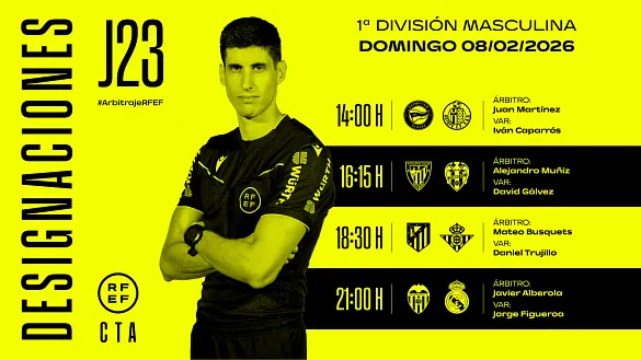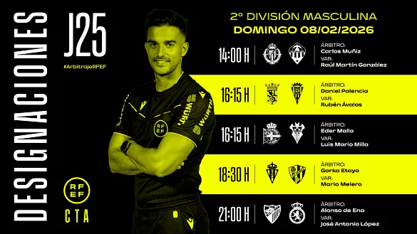 Actualidad Inicio Noticias Todas Categorías Institucional Expand Secondary Navigation Menu Presidencia Juntas directivas Igualdad Responsabilidad Social y Sostenibilidad Integridad Protección de la infancia Área médica Elecciones 2024 Federaciones Territoriales FIFA Patrocinadores rfef.es Museo Labor federativa Expand Secondary Navigation Menu Concursos Circulares Horarios Sanciones Mundial 2030 Competiciones masculinas Expand Secondary Navigation Menu Primera División Segunda División Primera Federación Segunda Federación Tercera Federación Copa del Rey Mapfre Supercopa Copa Federación Playoff de ascenso Competiciones UEFA Competiciones femeninas Expand Secondary Navigation Menu Primera División Femenina Primera Federación Iberdrola Segunda Federación FUTFEM Tercera Federación FUTFEM Copa de la Reina Iberdrola Supercopa Iberdrola Juveniles fútbol 11 Expand Secondary Navigation Menu División de Honor Juvenil Copa de Campeones Copa del Rey juvenil Youth League Selecciones autonómicas Expand Secondary Navigation Menu Copa de las Regiones de UEFA Femenino sub-16 Masculino sub-16 Femenino sub-14 Masculino sub-14 Femenino sub-12 Masculino sub-12 Fútbol sala Expand Secondary Navigation Menu Primera Masculina FS Primera FS Iberdrola Segunda Masculina FS Segunda Femenina FS Segunda B FS División de Honor Juvenil FS Copa de España Supercopa FS Supercopa Femenina FS Copa del Rey FS Copa de la Reina FS Copa de España Juvenil Campeonato de España Juvenil FS Futsal UEFA Champions League Selecciones autonómicas FS Otras competiciones Fútbol playa Expand Secondary Navigation Menu Primera División Playa Masc Segunda División Playa Masc Primera División Playa Fem Segunda División Playa Fem Copa Federación Playa Supercopa Playa Selecciones autonómicas Playa Campeonatos Clubes Base Playa Selecciones Playa adaptado Grassroots Expand Secondary Navigation Menu Playmakers Árbitros Expand Secondary Navigation Menu Designaciones VAR Expand Secondary Navigation Menu Audios VAR Entrenadores Expand Secondary Navigation Menu Premios Técnicos por el mundo Cursos Formación Expand Secondary Navigation Menu Formación online Formación presencial Selección Absoluta Selecciones Masculinas Expand Secondary Navigation Menu Sub-21 Sub-20 Sub-19 Sub-18 Sub-17 Sub-16 Sub-15 Sub-14 Selección Absoluta Femenina Selecciones Femeninas Expand Secondary Navigation Menu Sub-23 Sub-20 Femenina Sub-19 Femenina Sub-17 Femenina Sub-18 Femenina Sub-16 Femenina Sub-15 Femenina Sub-14 Femenina Selección Olímpica Expand Secondary Navigation Menu Selección Olímpica femenina Selección Olímpica masculina Selecciones fútbol sala masculinas Expand Secondary Navigation Menu Selección Absoluta fútbol sala Sub-23 fútbol sala Sub-21 fútbol sala Sub-18 fútbol sala Sub-19 fútbol sala Sub-17 fútbol sala Sub-16 fútbol sala Sub-15 fútbol sala Selecciones fútbol sala femeninas Expand Secondary Navigation Menu Selección Femenina fútbol sala Sub-23 Femenina fútbol sala Sub-21 Femenina fútbol sala Sub-19 Femenina fútbol sala Sub-18 Femenina fútbol sala Sub-17 Femenina fútbol sala Sub-15 Femenina fútbol sala Selecciones de fútbol playa Expand Secondary Navigation Menu Absoluta Masculina Playa Absoluta Femenina Playa Sub-21 Masculina Playa E-Sports Expand Secondary Navigation Menu e-Copa RFEF Leyendas Aplicar 57049 Resultados. Primera FS Iberdrola RESÚMENES | Febrero empieza fuerte en la Primera FS Iberdrola Todos los encuentros y los mejores resúmenes de la 17ª jornada, ¡A golpe de click! 08 Febrero 2026 Primera FS Iberdrola Igualdad en todos los frentes de la Primera FS Iberdrola Tres partidos aplazados y una clasificación provisional que mantiene abierta la pelea por todo 08 Febrero 2026 Galería de imágenes en el interior Selección Absoluta fútbol sala, Selección Femenina fútbol sala España domina en Europa: campeona masculina y femenina España domina en Europa. Con la victoria de este sábado ante Portugal, el fútbol sala español es vigente campeón europeo tanto en categoría masculina como en femenina. De la mano de Jesús Velasco,... 08 Febrero 2026 Galería de imágenes en el interior Selección Absoluta fútbol sala Antonio, estrella del Europeo El andaluz ha guiado a España hasta su octavo título convirtiéndose en bota de oro, mejor jugador de la final y del torneo 08 Febrero 2026 Video en el interior Selecciones autonómicas, Masculino sub-16 El apellido Azpilicueta vuelve a soñar en el fútbol navarro Sergio Nuin Azpilicueta, sobrino del internacional César Azpilicueta, destaca en la Selección navarra sub-16 07 Febrero 2026 Video en el interior Galería de imágenes en el interior Selección Absoluta fútbol sala España reconquista Europa (3-5) España vuelve a estar en lo más alto. Ante Portugal, en Liubliana, mismo lugar y mismo rival ante el que dejó de ser campeón de Europa en 2018, recupero el trono. Los de Jesús Velasco pusieron la... 07 Febrero 2026 Segunda Masculina FS El Wanapix toma el liderato de la Segunda División Liderato en solitario zaragozano, Móstoles consolida su ascenso y la lucha por la salvación se aprieta 07 Febrero 2026 Designaciones, VAR, Primera División, Segunda División Designaciones | Cambios en los equipos arbitrales de VAR de los partidos aplazados Sevilla- Girona y Cádiz-Almería El Comité Arbitral de la Competición Profesional ha modificado parte de los equipos arbitrales de VAR de los partidos aplazados Sevilla-Girona y Cádiz-Almería. De esta manera, en el partido de... 07 Febrero 2026 Video en el interior Selecciones autonómicas, Masculino sub-14 Oliver Martínez, talento en los CESA con ADN futbolero El jugador de la Selección aragonesa sub-14 es hijo de Iván Martínez, exentrenador del Zaragoza 07 Febrero 2026 Designaciones, VAR, Segunda División Designaciones | Estos son los árbitros para los partidos del domingo 8 de febrero de la jornada 25 en Segunda División DESIGNACIÓN ARBITRAL COMPLETA | SEGUNDA DIVISIÓ