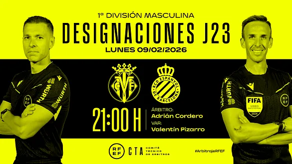 Actualidad Inicio Noticias Todas Categorías Institucional Expand Secondary Navigation Menu Presidencia Juntas directivas Igualdad Responsabilidad Social y Sostenibilidad Integridad Protección de la infancia Área médica Elecciones 2024 Federaciones Territoriales FIFA Patrocinadores rfef.es Museo Labor federativa Expand Secondary Navigation Menu Concursos Circulares Horarios Sanciones Mundial 2030 Competiciones masculinas Expand Secondary Navigation Menu Primera División Segunda División Primera Federación Segunda Federación Tercera Federación Copa del Rey Mapfre Supercopa Copa Federación Playoff de ascenso Competiciones UEFA Competiciones femeninas Expand Secondary Navigation Menu Primera División Femenina Primera Federación Iberdrola Segunda Federación FUTFEM Tercera Federación FUTFEM Copa de la Reina Iberdrola Supercopa Iberdrola Juveniles fútbol 11 Expand Secondary Navigation Menu División de Honor Juvenil Copa de Campeones Copa del Rey juvenil Youth League Selecciones autonómicas Expand Secondary Navigation Menu Copa de las Regiones de UEFA Femenino sub-16 Masculino sub-16 Femenino sub-14 Masculino sub-14 Femenino sub-12 Masculino sub-12 Fútbol sala Expand Secondary Navigation Menu Primera Masculina FS Primera FS Iberdrola Segunda Masculina FS Segunda Femenina FS Segunda B FS División de Honor Juvenil FS Copa de España Supercopa FS Supercopa Femenina FS Copa del Rey FS Copa de la Reina FS Copa de España Juvenil Campeonato de España Juvenil FS Futsal UEFA Champions League Selecciones autonómicas FS Otras competiciones Fútbol playa Expand Secondary Navigation Menu Primera División Playa Masc Segunda División Playa Masc Primera División Playa Fem Segunda División Playa Fem Copa Federación Playa Supercopa Playa Selecciones autonómicas Playa Campeonatos Clubes Base Playa Selecciones Playa adaptado Grassroots Expand Secondary Navigation Menu Playmakers Árbitros Expand Secondary Navigation Menu Designaciones VAR Expand Secondary Navigation Menu Audios VAR Entrenadores Expand Secondary Navigation Menu Premios Técnicos por el mundo Cursos Formación Expand Secondary Navigation Menu Formación online Formación presencial Selección Absoluta Selecciones Masculinas Expand Secondary Navigation Menu Sub-21 Sub-20 Sub-19 Sub-18 Sub-17 Sub-16 Sub-15 Sub-14 Selección Absoluta Femenina Selecciones Femeninas Expand Secondary Navigation Menu Sub-23 Sub-20 Femenina Sub-19 Femenina Sub-17 Femenina Sub-18 Femenina Sub-16 Femenina Sub-15 Femenina Sub-14 Femenina Selección Olímpica Expand Secondary Navigation Menu Selección Olímpica femenina Selección Olímpica masculina Selecciones fútbol sala masculinas Expand Secondary Navigation Menu Selección Absoluta fútbol sala Sub-23 fútbol sala Sub-21 fútbol sala Sub-18 fútbol sala Sub-19 fútbol sala Sub-17 fútbol sala Sub-16 fútbol sala Sub-15 fútbol sala Selecciones fútbol sala femeninas Expand Secondary Navigation Menu Selección Femenina fútbol sala Sub-23 Femenina fútbol sala Sub-21 Femenina fútbol sala Sub-19 Femenina fútbol sala Sub-18 Femenina fútbol sala Sub-17 Femenina fútbol sala Sub-15 Femenina fútbol sala Selecciones de fútbol playa Expand Secondary Navigation Menu Absoluta Masculina Playa Absoluta Femenina Playa Sub-21 Masculina Playa E-Sports Expand Secondary Navigation Menu e-Copa RFEF Leyendas Aplicar 57144 Resultados. Primera Federación Iberdrola Liderato blaugrana El FC Barcelona B se impone al Deportivo Alavés en Ibaia y alcanza la primera plaza 08 Febrero 2026 Video en el interior Galería de imágenes en el interior Selección Absoluta fútbol sala Homenaje a la selección de fútbol sala a su llegada a España La Selección de fútbol sala ya se encuentra en España. La ocho veces campeona de Europa aterrizó este domingo en Madrid con el trofeo y fue homenajeada en un acto presidido por el presidente de la... 08 Febrero 2026 Video en el interior Galería de imágenes en el interior Primera Federación RESÚMENES | Lo mejor de la jornada 23 CD Tenerife y CE Sabadell FC cierran el fin de semana liderando sus respectivas tablas 08 Febrero 2026 Video en el interior Selecciones autonómicas, Masculino sub-16 La Comunidad de Madrid, campeona de los CESA sub-16 La selección madrileña ha ganado a Aragón en la final por 0-3 08 Febrero 2026 Video en el interior Selecciones autonómicas, Masculino sub-14 La Comunidad Valenciana reina en los CESA sub-14 La Selección valenciana gana la final por 2-0 ante Cataluña y se proclama campeona de los Campeonatos de España de Selecciones Autonómicas 08 Febrero 2026 Designaciones, VAR, Segunda División Designaciones | Estos son los árbitros para el partido del lunes 9 de febrero de la jornada 25 en Segunda División DESIGNACIÓN ARBITRAL COMPLETA | SEGUNDA DIVISIÓN | TEMPORADA 2025-2026 | JORNADA 25 | LUNES 9 DE FEBRERO 08 Febrero 2026 Designaciones, Primera División, VAR Designaciones | Estos son los árbitros para el partido del lunes 9 de febrero de la jornada 23 en Primera División DESIGNACIÓN ARBITRAL COMPLETA | PRIMERA DIVISIÓN | TEMPORADA 2025-2026 | JORNADA 23 | LUNES 9 DE FEBRERO 08 Febrero 2026 Primera FS Iberdrola RESÚMENES | Febrero empieza fuerte en la Primera FS Iberdrola Todos los encuentros y los mejores resúmenes de la 17ª jornada, ¡A golpe de click! 08 Febrero 2026 Primera FS Iberdrola Igualdad en todos los frentes de la Primera FS Iberdrola Tres partidos aplazados y una clasificación provisional que mantiene abierta la pelea por todo 08 Febrero 2026 Galería de imágenes en el interior Selección Absoluta fútbol sala, Selección Femenina fútbol sala España domina en Europa: campeona masculina y femenina España domina en Europa. Con la victoria de este sábado ante Portugal, el fútbol sala español es vigente campeón europeo tanto en categoría masculina como en femenina. De la mano de Jesús Velasco,... 08 Febrero 2026 Galería de imágenes en el interior Selección Absoluta fútbol sala Antonio, estrella del Euro