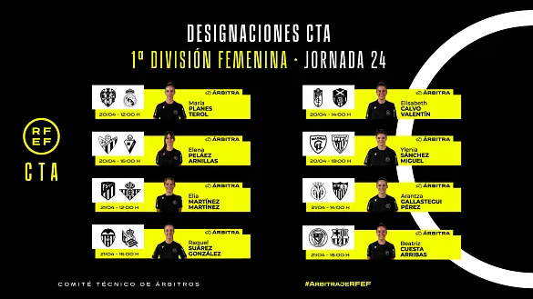 Actualidad Inicio Noticias Todas Categorías Institucional Expand Secondary Navigation Menu Presidencia Juntas directivas Igualdad Responsabilidad Social y Sostenibilidad Integridad Protección de la infancia Área médica Elecciones 2024 Federaciones Territoriales FIFA Patrocinadores rfef.es Museo Labor federativa Expand Secondary Navigation Menu Concursos Circulares Horarios Sanciones Mundial 2030 Competiciones masculinas Expand Secondary Navigation Menu Primera División Segunda División Primera Federación Segunda Federación Tercera Federación Copa del Rey Mapfre Supercopa Copa Federación Playoff de ascenso Competiciones UEFA Competiciones femeninas Expand Secondary Navigation Menu Primera División Femenina Primera Federación Iberdrola Segunda Federación FUTFEM Tercera Federación FUTFEM Copa de la Reina Iberdrola Supercopa Iberdrola Juveniles fútbol 11 Expand Secondary Navigation Menu División de Honor Juvenil Copa de Campeones Copa del Rey juvenil Youth League Selecciones autonómicas Expand Secondary Navigation Menu Copa de las Regiones de UEFA Femenino sub-16 Masculino sub-16 Femenino sub-14 Masculino sub-14 Femenino sub-12 Masculino sub-12 Fútbol sala Expand Secondary Navigation Menu Primera Masculina FS Primera FS Iberdrola Segunda Masculina FS Segunda Femenina FS Segunda B FS División de Honor Juvenil FS Copa de España Supercopa FS Supercopa Femenina FS Copa del Rey FS Copa de la Reina FS Copa de España Juvenil Campeonato de España Juvenil FS Futsal UEFA Champions League Selecciones autonómicas FS Otras competiciones Fútbol playa Expand Secondary Navigation Menu Primera División Playa Masc Segunda División Playa Masc Primera División Playa Fem Segunda División Playa Fem Copa Federación Playa Supercopa Playa Selecciones autonómicas Playa Campeonatos Clubes Base Playa Selecciones Playa adaptado Grassroots Expand Secondary Navigation Menu Playmakers Árbitros Expand Secondary Navigation Menu Designaciones VAR Expand Secondary Navigation Menu Audios VAR Entrenadores Expand Secondary Navigation Menu Premios Técnicos por el mundo Cursos Formación Expand Secondary Navigation Menu Formación online Formación presencial Selección Absoluta Selecciones Masculinas Expand Secondary Navigation Menu Sub-21 Sub-20 Sub-19 Sub-18 Sub-17 Sub-16 Sub-15 Sub-14 Selección Absoluta Femenina Selecciones Femeninas Expand Secondary Navigation Menu Sub-23 Sub-20 Femenina Sub-19 Femenina Sub-17 Femenina Sub-18 Femenina Sub-16 Femenina Sub-15 Femenina Sub-14 Femenina Selección Olímpica Expand Secondary Navigation Menu Selección Olímpica femenina Selección Olímpica masculina Selecciones fútbol sala masculinas Expand Secondary Navigation Menu Selección Absoluta fútbol sala Sub-23 fútbol sala Sub-21 fútbol sala Sub-18 fútbol sala Sub-19 fútbol sala Sub-17 fútbol sala Sub-16 fútbol sala Sub-15 fútbol sala Selecciones fútbol sala femeninas Expand Secondary Navigation Menu Selección Femenina fútbol sala Sub-23 Femenina fútbol sala Sub-21 Femenina fútbol sala Sub-19 Femenina fútbol sala Sub-18 Femenina fútbol sala Sub-17 Femenina fútbol sala Sub-15 Femenina fútbol sala Selecciones de fútbol playa Expand Secondary Navigation Menu Absoluta Masculina Playa Absoluta Femenina Playa Sub-21 Masculina Playa E-Sports Expand Secondary Navigation Menu e-Copa RFEF Leyendas Aplicar 57079 Resultados. Sub-15 Esta es la lista de la Selección Sub-15 para la Super Cup Pinatar David Gordo ha convocado a 23 jugadores para medirse a las selecciones de Escocia y Hong Kong, China 18 Abril 2024 Designaciones, Primera Federación Iberdrola OFICIAL | Estas son las árbitras designadas para dirigir los partidos de la jornada 25 en Primera Federación Femenina DESIGNACIÓN ARBITRAL COMPLETA DE LA JORNADA 25 EN PRIMERA FEDERACIÓN FEMENINA 18 Abril 2024 Primera Masculina FS Duelo de altura en el Palacio de los Deportes de Murcia Domingo, 21 de abril, a las 19 horas 18 Abril 2024 Primera Masculina FS Servigroup Peñíscola apura sus opciones de entrar en los playoffs Jaén Paraíso Interior visita el Juan Vizcarro 18 Abril 2024 Segunda Federación, Designaciones DESIGNACIONES | Estos son los árbitros de la jornada 32 en Segunda Federación La antepenúltima fecha del campeonato se jugará de manera íntegra entre el sábado 20 y el domingo 21 de mayo 18 Abril 2024 Primera Federación, Designaciones DESIGNACIONES | Estos son los árbitros de la jornada 33 en Primera Federación Los veinte encuentros tendrán lugar entre el sábado 20 y el domingo 21 de abril 18 Abril 2024 Primera Masculina FS Córdoba Patrimonio de la Humanidad y Jimbee Cartagena se ven las caras en Vista Alegre Sábado, 20 de abril, a las 20 horas 18 Abril 2024 Primera Masculina FS Barça y Real Betis Futsal abren la jornada 27 de Primera División Viernes, 19 de abril, a las 20:30 horas 18 Abril 2024 Primera Masculina FS CA Osasuna Magna apura sus opciones de playoffs ante Movistar Inter Sábado, 20 de abril, a las 20 horas 18 Abril 2024 Designaciones, Primera División Femenina OFICIAL | Estas son las árbitras designadas para dirigir los partidos de la jornada 24 en Primera División Femenina DESIGNACIÓN ARBITRAL COMPLETA DE LA JORNADA 24 EN PRIMERA DIVISIÓN FEMENINA 18 Abril 2024 Designaciones, VAR, Primera División OFICIAL | Estos son los árbitros designados para dirigir los partidos de la jornada 32 en Primera División masculina DESIGNACIÓN ARBITRAL COMPLETA DE LA JORNADA 32 EN PRIMERA DIVISIÓN MASCULINA 18 Abril 2024 Ver más Ver más