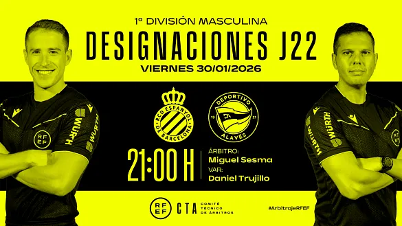 Actualidad Inicio Noticias Todas Categorías Institucional Expand Secondary Navigation Menu Presidencia Juntas directivas Igualdad Responsabilidad Social y Sostenibilidad Integridad Protección de la infancia Área médica Elecciones 2024 Federaciones Territoriales FIFA Patrocinadores rfef.es Museo Labor federativa Expand Secondary Navigation Menu Concursos Circulares Horarios Sanciones Mundial 2030 Competiciones masculinas Expand Secondary Navigation Menu Primera División Segunda División Primera Federación Segunda Federación Tercera Federación Copa del Rey Mapfre Supercopa Copa Federación Playoff de ascenso Competiciones UEFA Competiciones femeninas Expand Secondary Navigation Menu Primera División Femenina Primera Federación Iberdrola Segunda Federación FUTFEM Tercera Federación FUTFEM Copa de la Reina Iberdrola Supercopa Iberdrola Juveniles fútbol 11 Expand Secondary Navigation Menu División de Honor Juvenil Copa de Campeones Copa del Rey juvenil Youth League Selecciones autonómicas Expand Secondary Navigation Menu Copa de las Regiones de UEFA Femenino sub-16 Masculino sub-16 Femenino sub-14 Masculino sub-14 Femenino sub-12 Masculino sub-12 Fútbol sala Expand Secondary Navigation Menu Primera Masculina FS Primera FS Iberdrola Segunda Masculina FS Segunda Femenina FS Segunda B FS División de Honor Juvenil FS Copa de España Supercopa FS Supercopa Femenina FS Copa del Rey FS Copa de la Reina FS Copa de España Juvenil Campeonato de España Juvenil FS Futsal UEFA Champions League Selecciones autonómicas FS Otras competiciones Fútbol playa Expand Secondary Navigation Menu Primera División Playa Masc Segunda División Playa Masc Primera División Playa Fem Segunda División Playa Fem Copa Federación Playa Supercopa Playa Selecciones autonómicas Playa Campeonatos Clubes Base Playa Selecciones Playa adaptado Grassroots Expand Secondary Navigation Menu Playmakers Árbitros Expand Secondary Navigation Menu Designaciones VAR Expand Secondary Navigation Menu Audios VAR Entrenadores Expand Secondary Navigation Menu Premios Técnicos por el mundo Cursos Formación Expand Secondary Navigation Menu Formación online Formación presencial Selección Absoluta Selecciones Masculinas Expand Secondary Navigation Menu Sub-21 Sub-20 Sub-19 Sub-18 Sub-17 Sub-16 Sub-15 Sub-14 Selección Absoluta Femenina Selecciones Femeninas Expand Secondary Navigation Menu Sub-23 Sub-20 Femenina Sub-19 Femenina Sub-17 Femenina Sub-18 Femenina Sub-16 Femenina Sub-15 Femenina Sub-14 Femenina Selección Olímpica Expand Secondary Navigation Menu Selección Olímpica femenina Selección Olímpica masculina Selecciones fútbol sala masculinas Expand Secondary Navigation Menu Selección Absoluta fútbol sala Sub-23 fútbol sala Sub-21 fútbol sala Sub-18 fútbol sala Sub-19 fútbol sala Sub-17 fútbol sala Sub-16 fútbol sala Sub-15 fútbol sala Selecciones fútbol sala femeninas Expand Secondary Navigation Menu Selección Femenina fútbol sala Sub-23 Femenina fútbol sala Sub-21 Femenina fútbol sala Sub-19 Femenina fútbol sala Sub-18 Femenina fútbol sala Sub-17 Femenina fútbol sala Sub-15 Femenina fútbol sala Selecciones de fútbol playa Expand Secondary Navigation Menu Absoluta Masculina Playa Absoluta Femenina Playa Sub-21 Masculina Playa E-Sports Expand Secondary Navigation Menu e-Copa RFEF Leyendas Aplicar 57058 Resultados. Supercopa Femenina FS Reyco Burela FS, licencia para soñar en la Supercopa Seis títulos de campeón avalan a la escuadra de A Mariña 30 Enero 2026 Supercopa Femenina FS Atlético Navalcarnero, en busca de la novena Las rojiblancas son el equipo más laureado de la Supercopa de España 30 Enero 2026 Selección Absoluta fútbol sala Jesús Velasco: "Si seguimos a este nivel, tendremos muchas opciones ante Italia" España ya está en cuartos de final. El domingo (19:30 horas) se medirá a Italia, un rival al que ya se enfrentó como visitante el pasado mes de noviembre, con victoria por 3-4. El seleccionador,... 29 Enero 2026 Selección Absoluta fútbol sala Italia, rival de España en cuartos de final Italia será el rival de España el próximo domingo en cuartos de final (19:30 horas). El equipo transalpino logró la clasificación tras empatar con Hungría (2-2) en un partido decisivo y en el que... 29 Enero 2026 Galería de imágenes en el interior Selección Absoluta fútbol sala A cuartos con una goleada histórica (10-3) Primer objetivo cumplido. España ya está en cuartos de final del Europeo y, además, con pleno de victorias. Ante Bélgica, los de Jesús Velasco encarrilaron el choque en los primeros ocho minutos y ya... 29 Enero 2026 Video en el interior Galería de imágenes en el interior Formación, Entrenadores Julián Calero: "El entrenador está todo el día tomando decisiones, pero se trata de tomar muchas y equivocarte poco" El técnico que llevó al Levante UD a Primera División compartió sus experiencias con los alumn@s de los cursos de Entrenador 'UEFA PRO' y 'UEFA B&A' 29 Enero 2026 Supercopa Femenina FS Descarga el dosier con toda la información de la Supercopa de España femenina de fútbol sala Todo lo que necesitas saber de la competición antes de la disputa del primer título del 2026 29 Enero 2026 Video en el interior Galería de imágenes en el interior Copa de las Regiones de UEFA La 'Final Four' toma forma Galicia, Canarias, Navarra y Cataluña competirán por la Regions' Cup 29 Enero 2026 Designaciones, Primera División Femenina Designaciones | Estas son las árbitras de la jornada 18 en Primera División femenina DESIGNACIÓN ARBITRAL COMPLETA DE LA JORNADA 18 EN PRIMERA DIVISIÓN FEMENINA 29 Enero 2026 Designaciones, VAR, Segunda División Designaciones | Estos son los árbitros para el partido del viernes 30 de enero de la jornada 24 en Segunda División DESIGNACIÓN ARBITRAL COMPLETA DEL PARTIDO DEL VIERNES 30 DE ENERO EN SEGUNDA DIVISIÓN 29 Enero 2026 Designaciones, Primera División, VAR Designaciones | Estos son los árbitros para 
