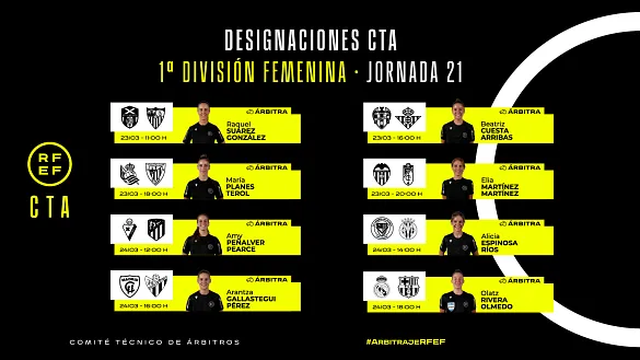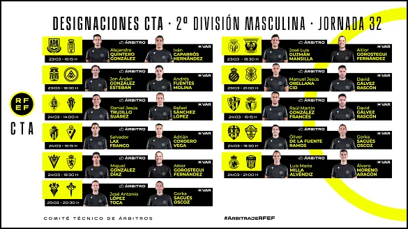 Actualidad Inicio Noticias Todas Categorías Institucional Expand Secondary Navigation Menu Presidencia Juntas directivas Igualdad Responsabilidad Social y Sostenibilidad Integridad Protección de la infancia Área médica Elecciones 2024 Federaciones Territoriales FIFA Patrocinadores rfef.es Museo Labor federativa Expand Secondary Navigation Menu Concursos Circulares Horarios Sanciones Mundial 2030 Competiciones masculinas Expand Secondary Navigation Menu Primera División Segunda División Primera Federación Segunda Federación Tercera Federación Copa del Rey Mapfre Supercopa Copa Federación Playoff de ascenso Competiciones UEFA Competiciones femeninas Expand Secondary Navigation Menu Primera División Femenina Primera Federación Iberdrola Segunda Federación FUTFEM Tercera Federación FUTFEM Copa de la Reina Iberdrola Supercopa Iberdrola Juveniles fútbol 11 Expand Secondary Navigation Menu División de Honor Juvenil Copa de Campeones Copa del Rey juvenil Youth League Selecciones autonómicas Expand Secondary Navigation Menu Copa de las Regiones de UEFA Femenino sub-16 Masculino sub-16 Femenino sub-14 Masculino sub-14 Femenino sub-12 Masculino sub-12 Fútbol sala Expand Secondary Navigation Menu Primera Masculina FS Primera FS Iberdrola Segunda Masculina FS Segunda Femenina FS Segunda B FS División de Honor Juvenil FS Copa de España Supercopa FS Supercopa Femenina FS Copa del Rey FS Copa de la Reina FS Copa de España Juvenil Campeonato de España Juvenil FS Futsal UEFA Champions League Selecciones autonómicas FS Otras competiciones Fútbol playa Expand Secondary Navigation Menu Primera División Playa Masc Segunda División Playa Masc Primera División Playa Fem Segunda División Playa Fem Copa Federación Playa Supercopa Playa Selecciones autonómicas Playa Campeonatos Clubes Base Playa Selecciones Playa adaptado Grassroots Expand Secondary Navigation Menu Playmakers Árbitros Expand Secondary Navigation Menu Designaciones VAR Expand Secondary Navigation Menu Audios VAR Entrenadores Expand Secondary Navigation Menu Premios Técnicos por el mundo Cursos Formación Expand Secondary Navigation Menu Formación online Formación presencial Selección Absoluta Selecciones Masculinas Expand Secondary Navigation Menu Sub-21 Sub-20 Sub-19 Sub-18 Sub-17 Sub-16 Sub-15 Sub-14 Selección Absoluta Femenina Selecciones Femeninas Expand Secondary Navigation Menu Sub-23 Sub-20 Femenina Sub-19 Femenina Sub-17 Femenina Sub-18 Femenina Sub-16 Femenina Sub-15 Femenina Sub-14 Femenina Selección Olímpica Expand Secondary Navigation Menu Selección Olímpica femenina Selección Olímpica masculina Selecciones fútbol sala masculinas Expand Secondary Navigation Menu Selección Absoluta fútbol sala Sub-23 fútbol sala Sub-21 fútbol sala Sub-18 fútbol sala Sub-19 fútbol sala Sub-17 fútbol sala Sub-16 fútbol sala Sub-15 fútbol sala Selecciones fútbol sala femeninas Expand Secondary Navigation Menu Selección Femenina fútbol sala Sub-23 Femenina fútbol sala Sub-21 Femenina fútbol sala Sub-19 Femenina fútbol sala Sub-18 Femenina fútbol sala Sub-17 Femenina fútbol sala Sub-15 Femenina fútbol sala Selecciones de fútbol playa Expand Secondary Navigation Menu Absoluta Masculina Playa Absoluta Femenina Playa Sub-21 Masculina Playa E-Sports Expand Secondary Navigation Menu e-Copa RFEF Leyendas Aplicar 57125 Resultados. Designaciones, VAR, Segunda División OFICIAL | Estos son los árbitros designados para dirigir los partidos de la jornada 32 en Segunda División masculina DESIGNACIÓN ARBITRAL COMPLETA DE LA JORNADA 32 EN SEGUNDA DIVISIÓN MASCULINA 21 Marzo 2024 Designaciones, Primera División Femenina OFICIAL | Estas son las árbitras designadas para dirigir los partidos de la jornada 21 en Primera División femenina DESIGNACIÓN ARBITRAL COMPLETA DE LA JORNADA 21 EN PRIMERA DIVISIÓN FEMENINA 21 Marzo 2024 Copa de España Todo listo para el inicio de los cuartos de final de la Copa de España Renfe El Palacio de los Deportes de Cartagena acoge la vigente edición de la Copa de España Renfe. 21 Marzo 2024 Copa de España Derbi murciano en los cuartos de final de la Copa de España Los cuartos de final se cerrarán el 22 de marzo a las 21:30 horas con la disputa del derbi regional en busca de la última plaza para las semifinales. 21 Marzo 2024 Copa de España El debutante reta al vigente campeón El tercer encuentro de cuartos de final arrancará este viernes, 22 de marzo, a las 19:00 horas. 21 Marzo 2024 Copa de España Movistar Inter y Mallorca Palma Futsal buscan el pase a semifinales El encuentro cerrará la jornada del jueves 21 de marzo a las 21:30 horas. 21 Marzo 2024 Copa de España Barça y CA Osasuna Magna abren los cuartos de final de la Copa de España El encuentro tendrá lugar este jueves 21 de marzo a las 18:30 horas. 21 Marzo 2024 Video en el interior Galería de imágenes en el interior Sub-21 Santi Denia: "Estamos deseando competir y mostrar nuestra mejor versión" El Seleccionador nacional sub-21 compareció ante los medios en la previa del partido que le enfrenta a Eslovaquia este jueves en el Estadio de Chapín 20 Marzo 2024 Selección Olímpica femenina Japón, Brasil y Sudáfrica o Nigeria serán los rivales de España en los Juegos Olímpicos El sorteo para la cita continental se ha celebrado en París este mismo miércoles, 20 de marzo de 2024 20 Marzo 2024 Selección Olímpica masculina Egipto, República Dominicana y el subcampeón de la Copa Asiática sub-23, rivales de España en el Torneo Olímpico de Fútbol masculino Tras el sorteo celebrado en la tarde del miércoles, 20 de marzo, en París ya se conocen los grupos para la cita estival 20 Marzo 2024 Institucional La RFEF ofrece toda la colaboración a las Fuerzas y Cuerpos de Seguridad e insta a que se llegue hasta las últimas consecuencias La RFEF ha ofrecido hoy toda la colaboración a las Fuerzas y Cuerpos de Seguridad del Estado, así como a la Justicia, tras el registro de su sede; y ha apostado por 