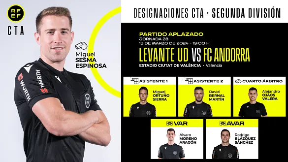 Actualidad Inicio Noticias Todas Categorías Institucional Expand Secondary Navigation Menu Presidencia Juntas directivas Igualdad Responsabilidad Social y Sostenibilidad Integridad Protección de la infancia Área médica Elecciones 2024 Federaciones Territoriales FIFA Patrocinadores rfef.es Museo Labor federativa Expand Secondary Navigation Menu Concursos Circulares Horarios Sanciones Mundial 2030 Competiciones masculinas Expand Secondary Navigation Menu Primera División Segunda División Primera Federación Segunda Federación Tercera Federación Copa del Rey Mapfre Supercopa Copa Federación Playoff de ascenso Competiciones UEFA Competiciones femeninas Expand Secondary Navigation Menu Primera División Femenina Primera Federación Iberdrola Segunda Federación FUTFEM Tercera Federación FUTFEM Copa de la Reina Iberdrola Supercopa Iberdrola Juveniles fútbol 11 Expand Secondary Navigation Menu División de Honor Juvenil Copa de Campeones Copa del Rey juvenil Youth League Selecciones autonómicas Expand Secondary Navigation Menu Copa de las Regiones de UEFA Femenino sub-16 Masculino sub-16 Femenino sub-14 Masculino sub-14 Femenino sub-12 Masculino sub-12 Fútbol sala Expand Secondary Navigation Menu Primera Masculina FS Primera FS Iberdrola Segunda Masculina FS Segunda Femenina FS Segunda B FS División de Honor Juvenil FS Copa de España Supercopa FS Supercopa Femenina FS Copa del Rey FS Copa de la Reina FS Copa de España Juvenil Campeonato de España Juvenil FS Futsal UEFA Champions League Selecciones autonómicas FS Otras competiciones Fútbol playa Expand Secondary Navigation Menu Primera División Playa Masc Segunda División Playa Masc Primera División Playa Fem Segunda División Playa Fem Copa Federación Playa Supercopa Playa Selecciones autonómicas Playa Campeonatos Clubes Base Playa Selecciones Playa adaptado Grassroots Expand Secondary Navigation Menu Playmakers Árbitros Expand Secondary Navigation Menu Designaciones VAR Expand Secondary Navigation Menu Audios VAR Entrenadores Expand Secondary Navigation Menu Premios Técnicos por el mundo Cursos Formación Expand Secondary Navigation Menu Formación online Formación presencial Selección Absoluta Selecciones Masculinas Expand Secondary Navigation Menu Sub-21 Sub-20 Sub-19 Sub-18 Sub-17 Sub-16 Sub-15 Sub-14 Selección Absoluta Femenina Selecciones Femeninas Expand Secondary Navigation Menu Sub-23 Sub-20 Femenina Sub-19 Femenina Sub-17 Femenina Sub-18 Femenina Sub-16 Femenina Sub-15 Femenina Sub-14 Femenina Selección Olímpica Expand Secondary Navigation Menu Selección Olímpica femenina Selección Olímpica masculina Selecciones fútbol sala masculinas Expand Secondary Navigation Menu Selección Absoluta fútbol sala Sub-23 fútbol sala Sub-21 fútbol sala Sub-18 fútbol sala Sub-19 fútbol sala Sub-17 fútbol sala Sub-16 fútbol sala Sub-15 fútbol sala Selecciones fútbol sala femeninas Expand Secondary Navigation Menu Selección Femenina fútbol sala Sub-23 Femenina fútbol sala Sub-21 Femenina fútbol sala Sub-19 Femenina fútbol sala Sub-18 Femenina fútbol sala Sub-17 Femenina fútbol sala Sub-15 Femenina fútbol sala Selecciones de fútbol playa Expand Secondary Navigation Menu Absoluta Masculina Playa Absoluta Femenina Playa Sub-21 Masculina Playa E-Sports Expand Secondary Navigation Menu e-Copa RFEF Leyendas Aplicar 57135 Resultados. Video en el interior Segunda División, Audios VAR Estos son los audios de las revisiones VAR de la Jornada 30 de Segunda División Estos audios se publicarán los sábados, domingos y lunes de cada jornada de Primera y Segunda División 11 Marzo 2024 Video en el interior Selección Femenina fútbol sala Laia Rojo: "Estar aquí es cumplir un sueño" La catalana, de 19 años, debuta en una convocatoria con la selección absoluta 11 Marzo 2024 Galería de imágenes en el interior Formación Comienza una nueva edición del ‘Curso de Especialista en Entrenamiento de Porteros Diploma y Licencia UEFA GK B’ de la RFEF El curso cuenta con 24 alumnos procedentes de los cursos federativos de ‘Especialista en Entrenamiento de Porteros de Fútbol Nacional C’ impartidos en las Escuelas de Entrenadores de las Federaciones Territoriales 11 Marzo 2024 Segunda Federación FUTFEM Consulta los horarios de la 25ª jornada en Segunda Federación FutFem Todos los partidos se disputarán entre el sábado 23 y el domingo 24 de marzo 11 Marzo 2024 Segunda División, Designaciones DESIGNACIONES | Estos son los colegiados para el partido aplazado de segunda división entre Levante UD y FC Andorra El encuentro, correspondiente a la 28ª jornada de Segunda División, se disputará el próximo 13 de marzo a las 19:00 horas. 11 Marzo 2024 Segunda Federación, Designaciones DESIGNACIONES | Estos son los árbitros para el encuentro aplazado CE Europa - Valencia Mestalla El partido, correspondiente a la 24ª jornada de Segunda Federación, tendrá lugar este miércoles, 13 de marzo, a las 20:30 horas 11 Marzo 2024 Designaciones, Copa de la Reina Iberdrola Árbitras designadas para los partidos de vuelta de las semifinales de la Copa de la Reina DESIGNACIÓN ARBITRAL COMPLETA DE LAS SEMIFINALES DE LA COPA DE LA REINA 11 Marzo 2024 Tercera Federación FUTFEM, Horarios Este es el turno de juego del próximo fin de semana en Tercera Federación Los grupos 1, 2, 3, 4, y 5 disputan la jornada 23 mientras que el grupo 6 celebra la 24 11 Marzo 2024 Video en el interior Galería de imágenes en el interior Árbitros, Femenino sub-14, Femenino sub-16 Así es el día de partido de una árbitra La colegiada murciana, Celia Madrid, nos cuenta de primera mano su paso por los Campeonatos Autonómicos celebrados en su tierra 11 Marzo 2024 Copa del Rey FS El Palacio de Deportes de San Pablo de Sevilla acogerá la Final Four de la Copa del Rey Real Betis, Jaén Paraíso Interior, Servigroup Peñíscola y Jimbee Cartagena lucharán por el título 11 Marzo 2024 Galería de imágenes en el interior Primera Masculina FS Un go