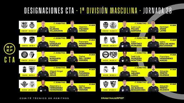 Actualidad Inicio Noticias Todas Categorías Institucional Expand Secondary Navigation Menu Presidencia Juntas directivas Igualdad Responsabilidad Social y Sostenibilidad Integridad Protección de la infancia Área médica Elecciones 2024 Federaciones Territoriales FIFA Patrocinadores rfef.es Museo Labor federativa Expand Secondary Navigation Menu Concursos Circulares Horarios Sanciones Mundial 2030 Competiciones masculinas Expand Secondary Navigation Menu Primera División Segunda División Primera Federación Segunda Federación Tercera Federación Copa del Rey Mapfre Supercopa Copa Federación Playoff de ascenso Competiciones UEFA Competiciones femeninas Expand Secondary Navigation Menu Primera División Femenina Primera Federación Iberdrola Segunda Federación FUTFEM Tercera Federación FUTFEM Copa de la Reina Iberdrola Supercopa Iberdrola Juveniles fútbol 11 Expand Secondary Navigation Menu División de Honor Juvenil Copa de Campeones Copa del Rey juvenil Youth League Selecciones autonómicas Expand Secondary Navigation Menu Copa de las Regiones de UEFA Femenino sub-16 Masculino sub-16 Femenino sub-14 Masculino sub-14 Femenino sub-12 Masculino sub-12 Fútbol sala Expand Secondary Navigation Menu Primera Masculina FS Primera FS Iberdrola Segunda Masculina FS Segunda Femenina FS Segunda B FS División de Honor Juvenil FS Copa de España Supercopa FS Supercopa Femenina FS Copa del Rey FS Copa de la Reina FS Copa de España Juvenil Campeonato de España Juvenil FS Futsal UEFA Champions League Selecciones autonómicas FS Otras competiciones Fútbol playa Expand Secondary Navigation Menu Primera División Playa Masc Segunda División Playa Masc Primera División Playa Fem Segunda División Playa Fem Copa Federación Playa Supercopa Playa Selecciones autonómicas Playa Campeonatos Clubes Base Playa Selecciones Playa adaptado Grassroots Expand Secondary Navigation Menu Playmakers Árbitros Expand Secondary Navigation Menu Designaciones VAR Expand Secondary Navigation Menu Audios VAR Entrenadores Expand Secondary Navigation Menu Premios Técnicos por el mundo Cursos Formación Expand Secondary Navigation Menu Formación online Formación presencial Selección Absoluta Selecciones Masculinas Expand Secondary Navigation Menu Sub-21 Sub-20 Sub-19 Sub-18 Sub-17 Sub-16 Sub-15 Sub-14 Selección Absoluta Femenina Selecciones Femeninas Expand Secondary Navigation Menu Sub-23 Sub-20 Femenina Sub-19 Femenina Sub-17 Femenina Sub-18 Femenina Sub-16 Femenina Sub-15 Femenina Sub-14 Femenina Selección Olímpica Expand Secondary Navigation Menu Selección Olímpica femenina Selección Olímpica masculina Selecciones fútbol sala masculinas Expand Secondary Navigation Menu Selección Absoluta fútbol sala Sub-23 fútbol sala Sub-21 fútbol sala Sub-18 fútbol sala Sub-19 fútbol sala Sub-17 fútbol sala Sub-16 fútbol sala Sub-15 fútbol sala Selecciones fútbol sala femeninas Expand Secondary Navigation Menu Selección Femenina fútbol sala Sub-23 Femenina fútbol sala Sub-21 Femenina fútbol sala Sub-19 Femenina fútbol sala Sub-18 Femenina fútbol sala Sub-17 Femenina fútbol sala Sub-15 Femenina fútbol sala Selecciones de fútbol playa Expand Secondary Navigation Menu Absoluta Masculina Playa Absoluta Femenina Playa Sub-21 Masculina Playa E-Sports Expand Secondary Navigation Menu e-Copa RFEF Leyendas Aplicar 57138 Resultados. Copa de la Reina Iberdrola La Copa de la Reina pasa por La Catedral El estadio de San Mamés será el escenario de la ida de la semifinal que enfrenta a Athletic de Bilbao y FC Barcelona (19.00 horas, Teledeporte, Eitb y 3cat) 07 Marzo 2024 Galería de imágenes en el interior Copa de la Reina FS Alhaurín de la Torre, sede de la fase final de la Copa de la Reina de fútbol sala Los ocho equipos clasificados se jugarán el título del 12 al 14 de abril 07 Marzo 2024 Video en el interior Copa del Rey juvenil Joan Pol: el héroe en ambas porterías que metió al Mallorca en la Final Four El guardameta fue el protagonista de una tanda de penaltis en la que detuvo un lanzamiento y anotó el tanto definitivo 07 Marzo 2024 Designaciones, Primera Federación Iberdrola OFICIAL | Estas son las árbitras designadas para dirigir los partidos de la jornada 20 en Primera Federación Femenina DESIGNACIÓN ARBITRAL COMPLETA DE LA JORNADA 20 EN PRIMERA FEDERACIÓN FEMENINA 07 Marzo 2024 Segunda Federación, Designaciones DESIGNACIONES | Estos son los árbitros de la jornada 26 en Segunda Federación Los cinco grupos dibujarán sus encuentros entre el sábado 9 y el domingo 10 de marzo 07 Marzo 2024 Designaciones, Segunda División, VAR OFICIAL | Estos son los árbitros designados para dirigir los partidos de la jornada 30 en Segunda División masculina DESIGNACIÓN ARBITRAL COMPLETA DE LA JORNADA 30 EN SEGUNDA DIVISIÓN 07 Marzo 2024 Designaciones, Primera División Femenina OFICIAL | Estas son las árbitras designadas para dirigir los partidos de la jornada 19 en Primera División femenina DESIGNACIÓN ARBITRAL COMPLETA DE LA JORNADA 19 EN PRIMERA DIVISIÓN FEMENINA 07 Marzo 2024 Primera Federación, Designaciones DESIGNACIONES | Estos son los árbitros de la jornada 27 en Primera Federación Los partidos se desarrollarán entre el sábado 9 y el domingo 10 de marzo 07 Marzo 2024 Designaciones, VAR, Primera División OFICIAL | Estos son los árbitros designados para dirigir los partidos de la jornada 28 en Primera División masculina DESIGNACIÓN ARBITRAL COMPLETA DE LA JORNADA 28 EN PRIMERA DIVISIÓN MASCULINA 07 Marzo 2024 Video en el interior Copa del Rey juvenil Adri y Marcos Lopes: las torres gemelas del Real Oviedo Los hermanos forman una pareja de centrales implacable que buscará alzarse con el título en el Carlos Tartiere 07 Marzo 2024 Video en el interior Copa del Rey juvenil Llorenç Serred: de parar a Vinicius a pelear por la Copa del Rey Juvenil El guardameta del RCD Espanyol nos cuenta cómo le surgió la oportunidad de entrenar con la Selección Absoluta de Brasil 07 Marzo 2024