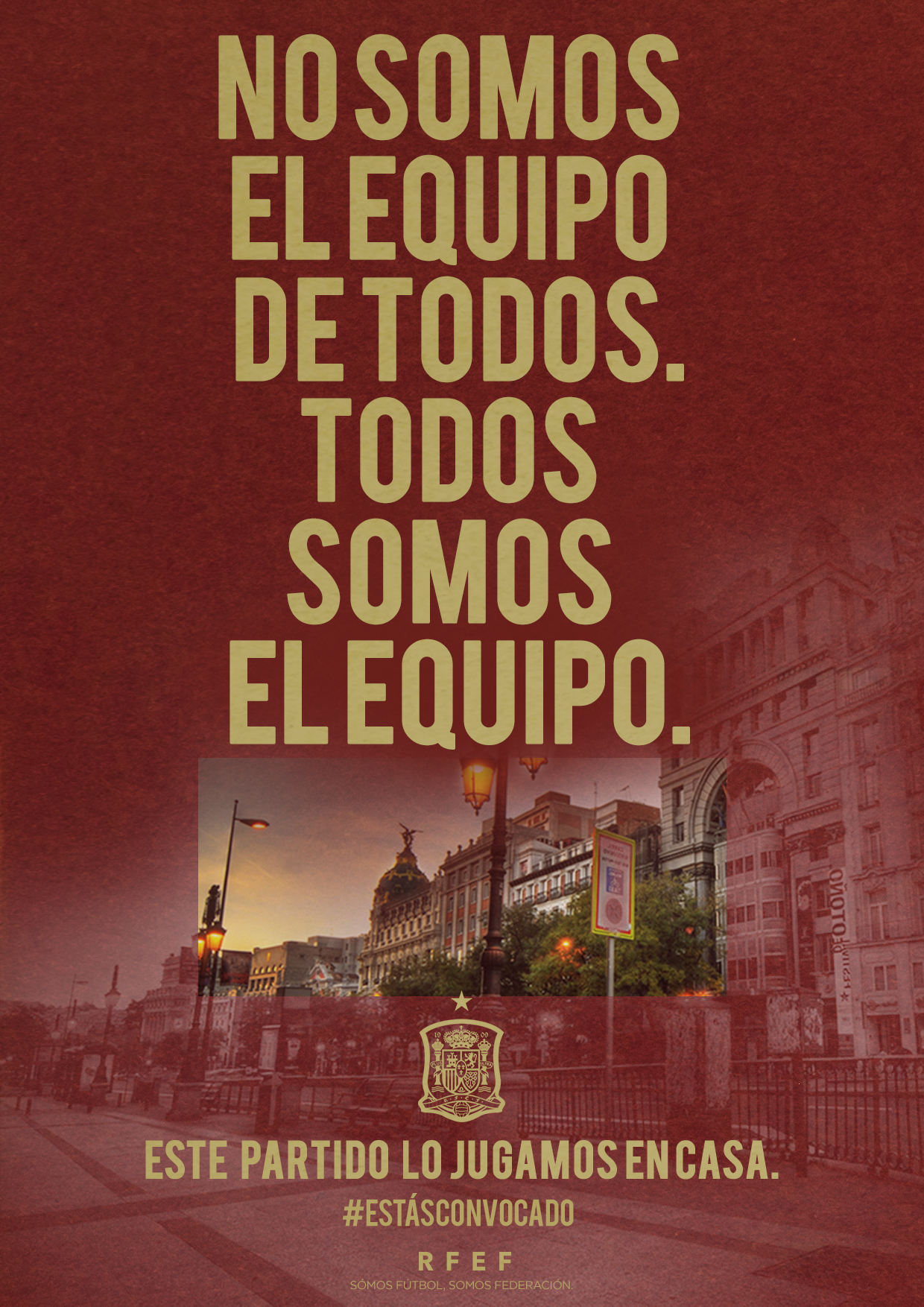 “Este partido lo jugamos en casa. Estás convocado”, es el lema de una acción que anima a quedarse en casa y a luchar por cada una de las personas a las que queremos, y para vencer a un rival, que no es campeón de Europa ni del mundo, que es muy fuerte, pero que será derrotado.